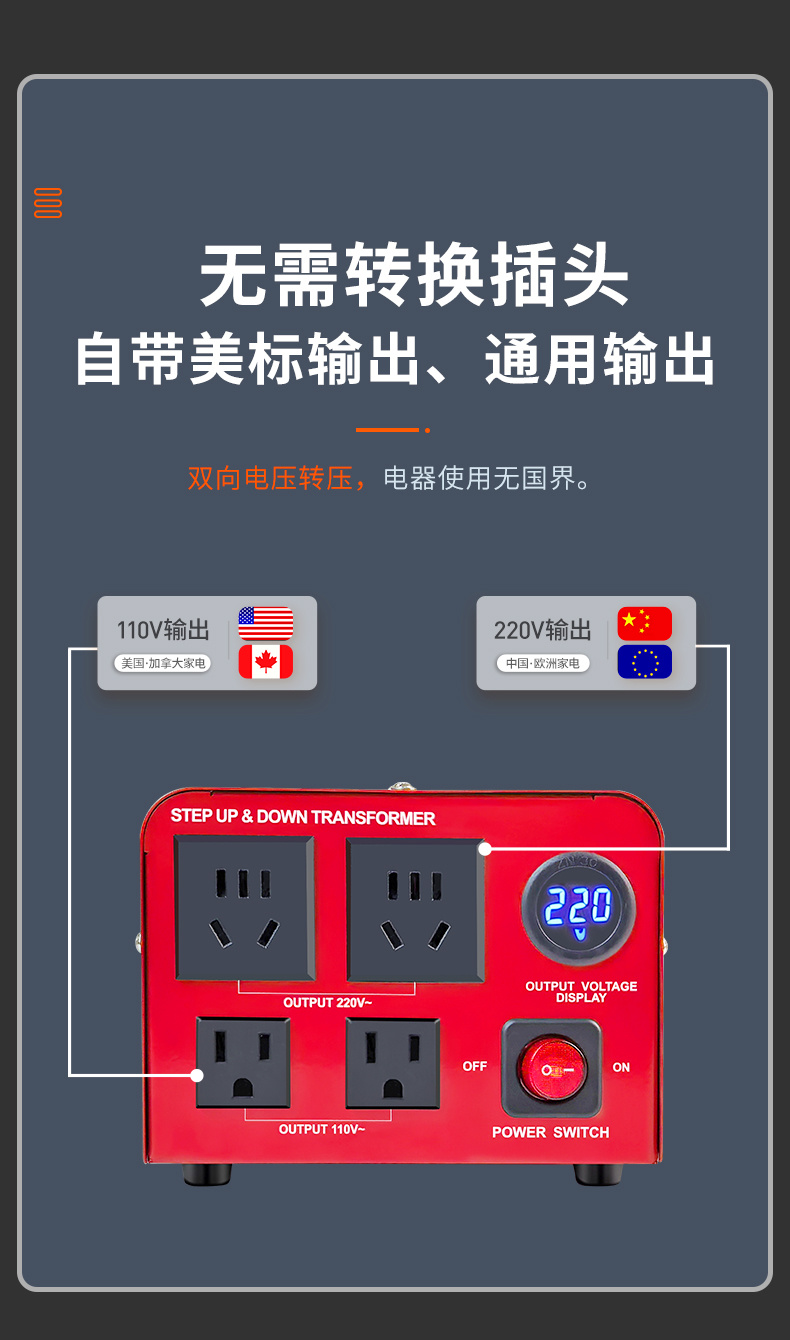 1500VA雙向變壓器220V轉(zhuǎn)110V110V伏轉(zhuǎn)220伏舜紅變壓器國內(nèi)境外通用變壓器可訂制